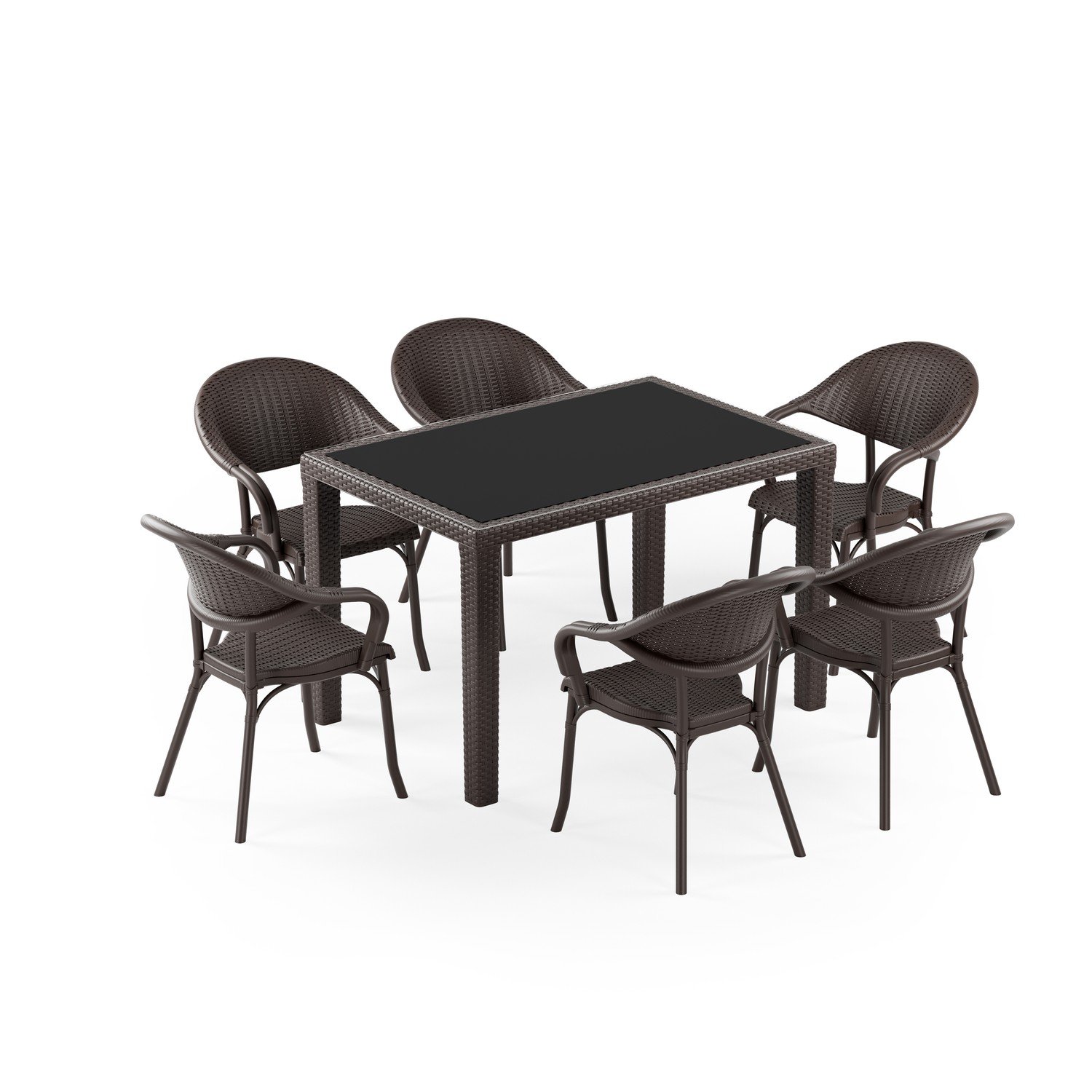 Antares Camlı 80X120 Flash-R 6 Kişilik Rattan Masa Takımı