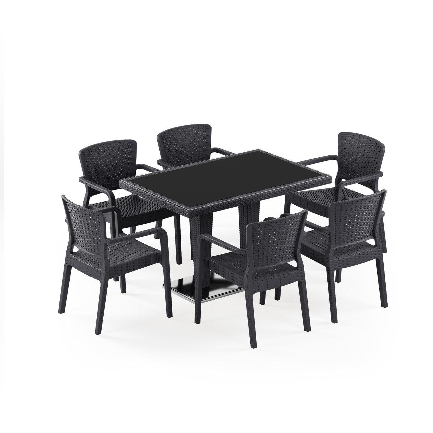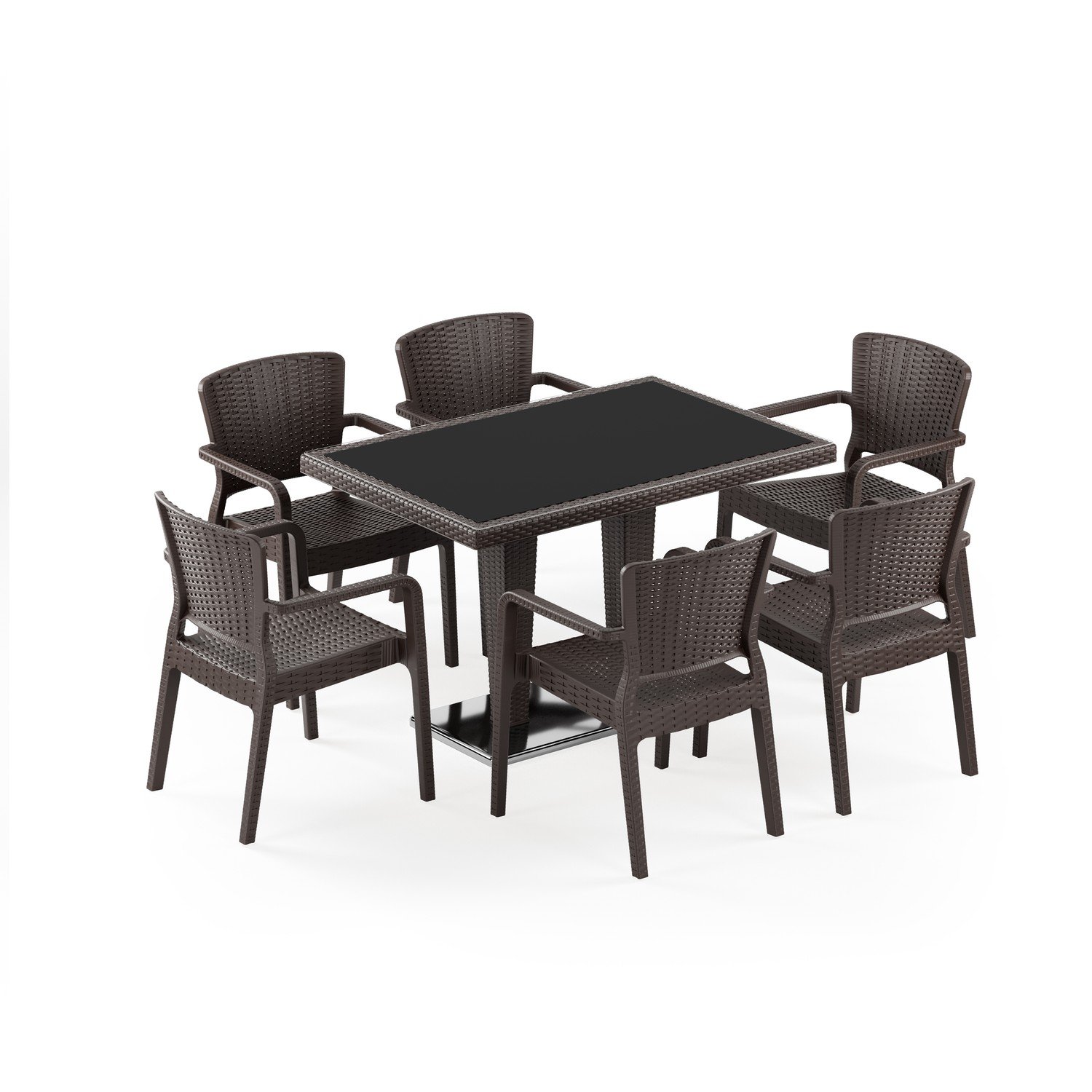 Antares Krom Ayak Camlı 80X120 Antares Koltuk 6 Kişilik Rattan Masa Takımı