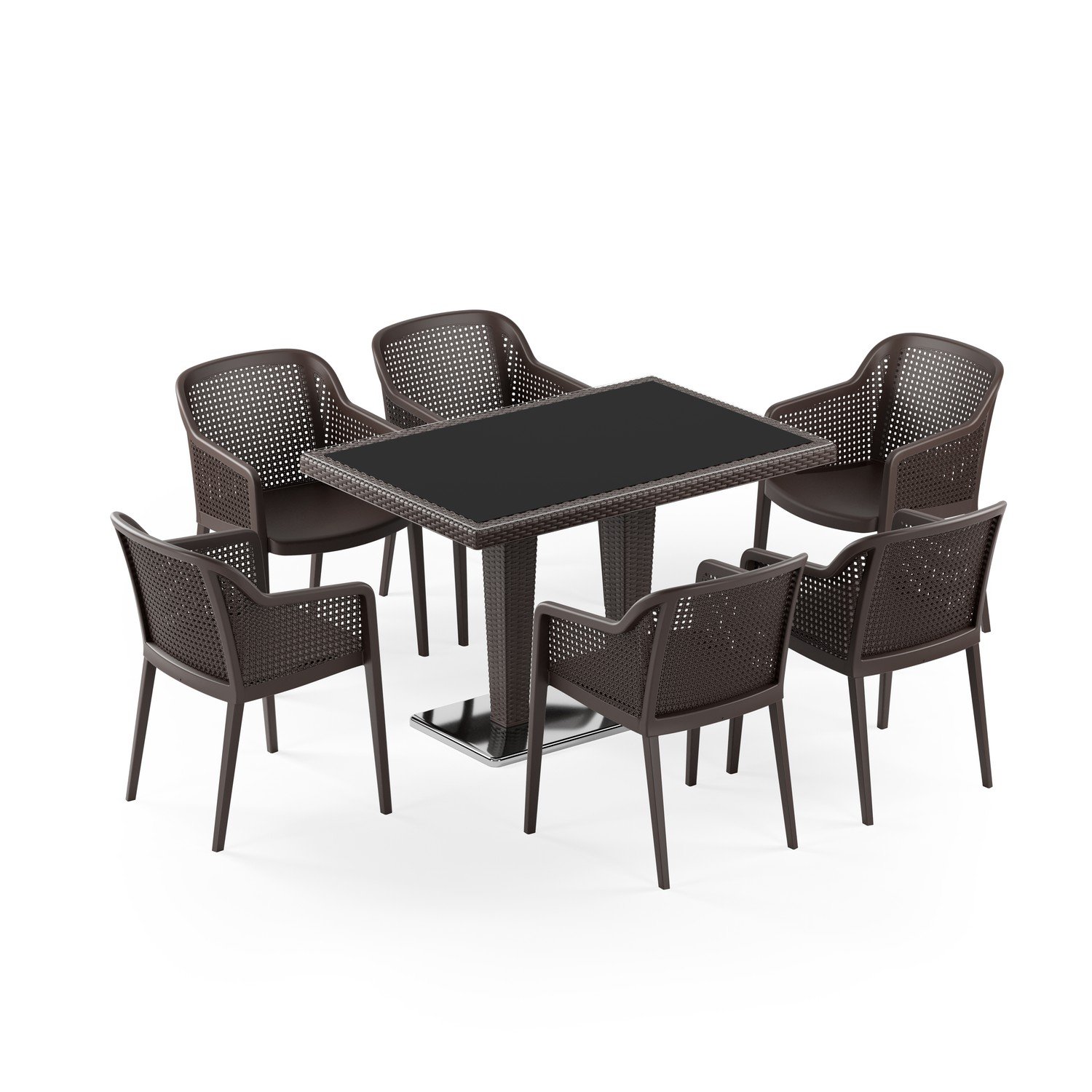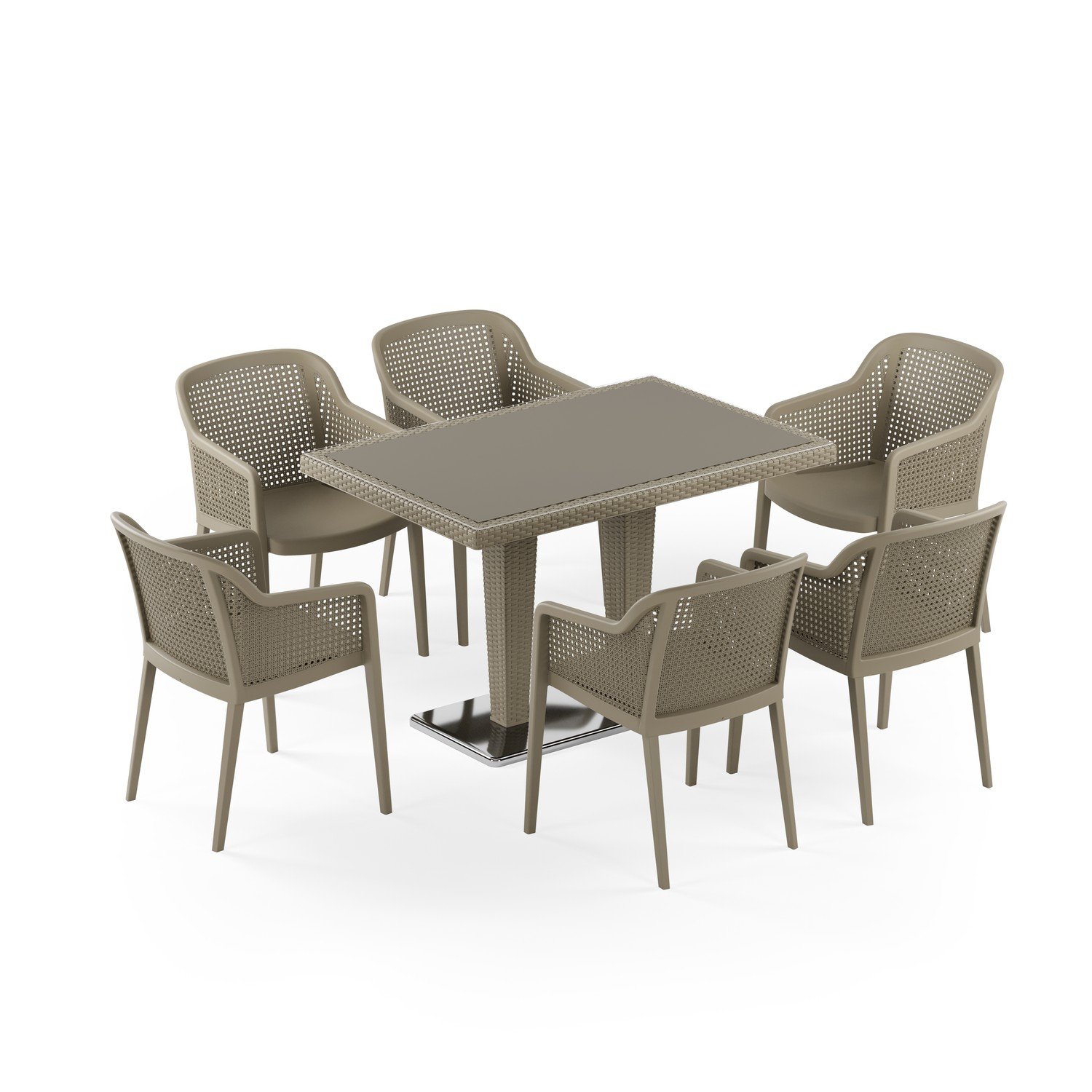 Antares Krom Ayak Camlı 80X120 Octa 6 Kişilik Rattan Masa Takımı