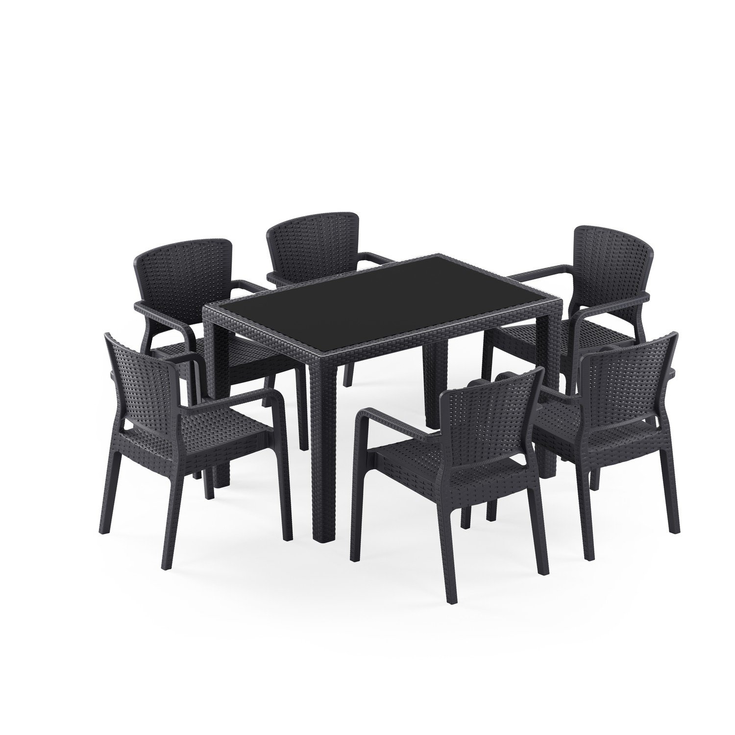 Antares Camlı 80X120 Antares Koltuk 6 Kişilik Rattan Masa Takımı