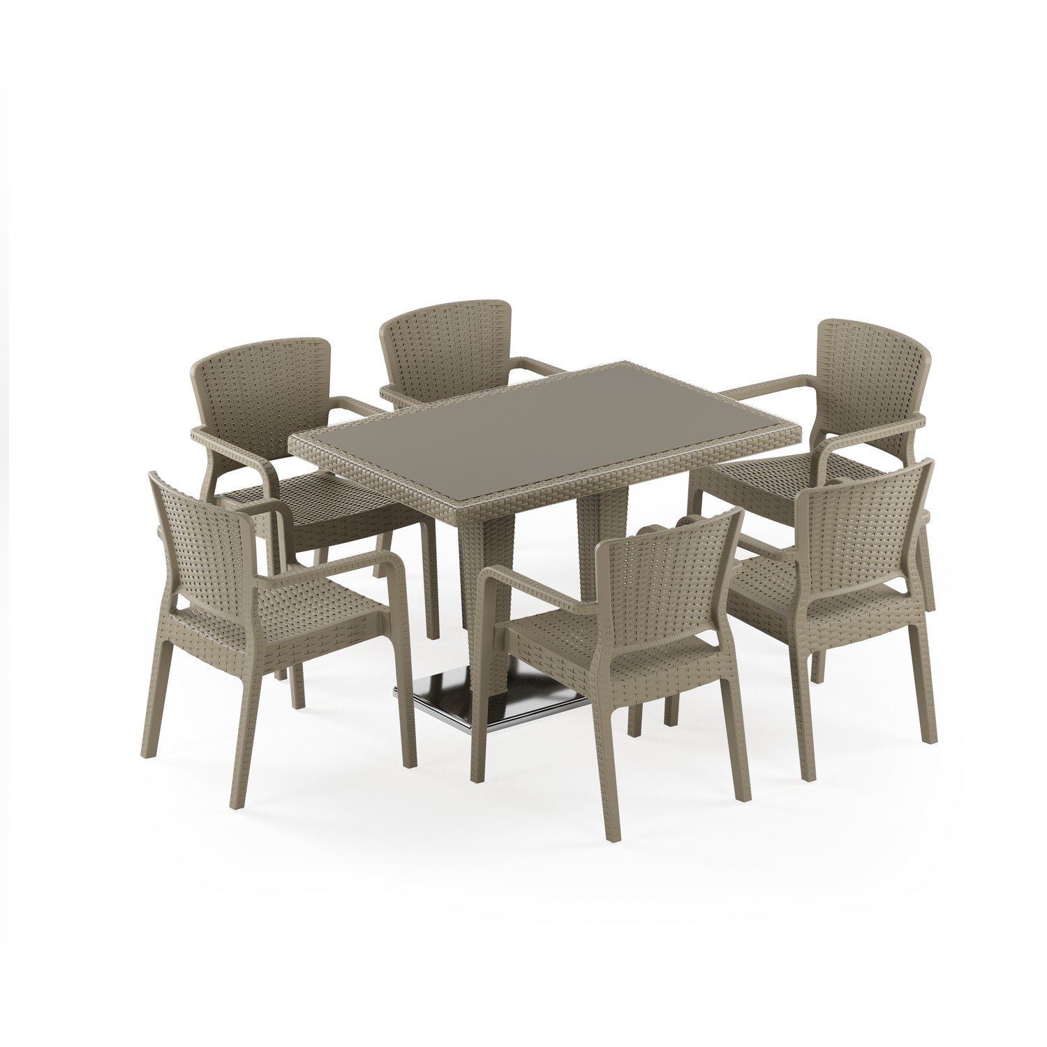 Antares Krom Ayak Camlı 80X120 Antares Koltuk 6 Kişilik Rattan Masa Takımı